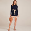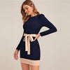 Two Tone Elegant Bodycon Dress With Belt Women Spring Long Sleeve Zipper Back High Waist Office Lady Short Pencil Dresses