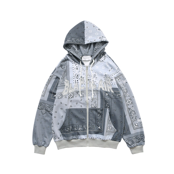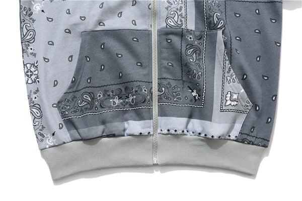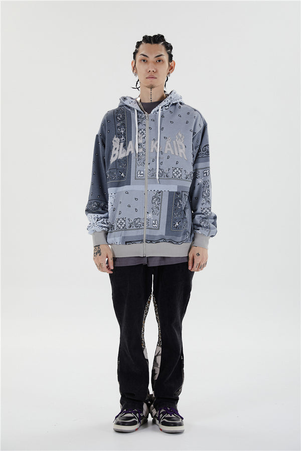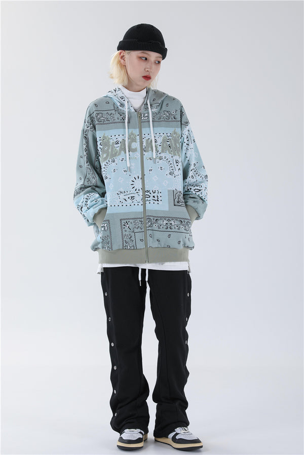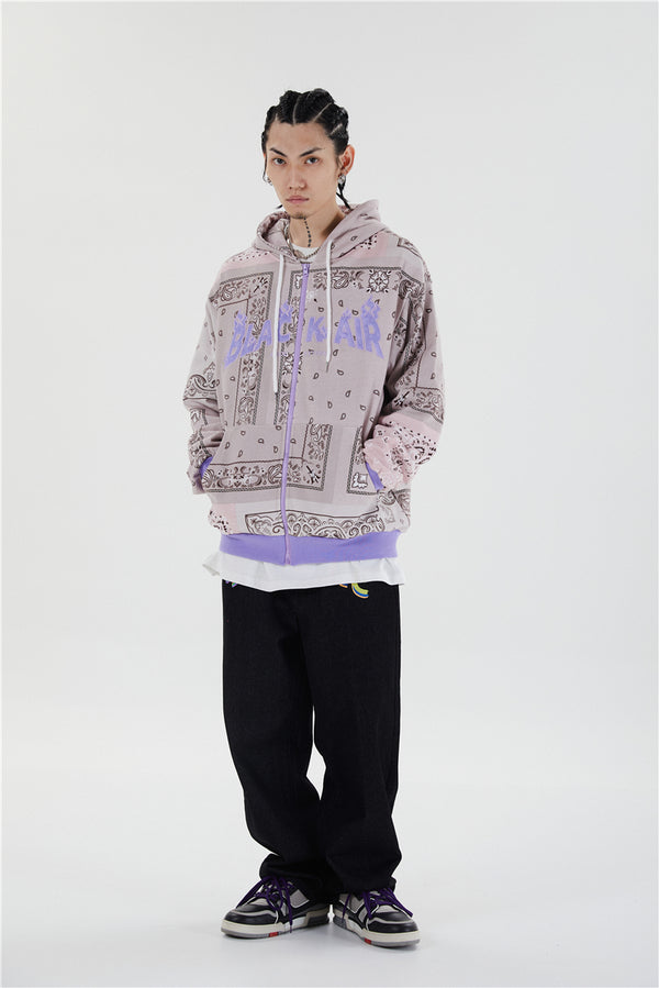Full Zip Cashew Flowers Pink Hooded Sweatshirts Hoodies Men/women Harajuku Casual Patchwork Hoodie Hip Hop Cotton Tops