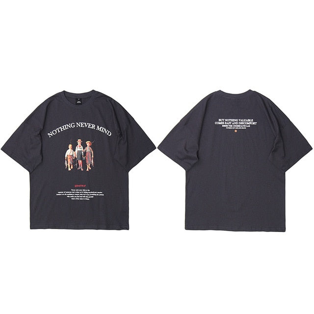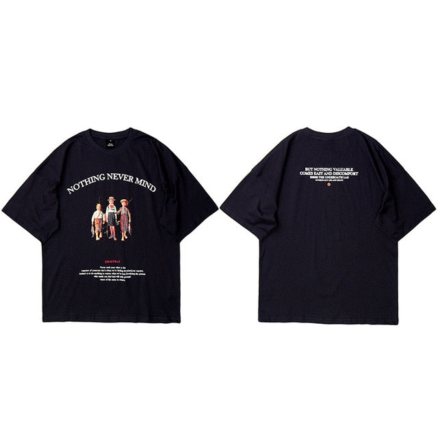 Mens Hip Hop T Shirts Streetwear Retro Childhood Harajuku Tshirt Short Sleeve Summer T-Shirt Cotton Tops Tees Black White