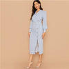 Blue Shawl Collar Lantern Sleeve Button Front Split Hem Elegant Dress Women Autumn High Waist Midi Pencil Dresses