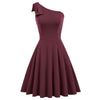 Sexy Women Bow-Knot dress Asymmetric One Shoulder Flared A-Line Dress elegant pure color knee length evening party dresses lady
