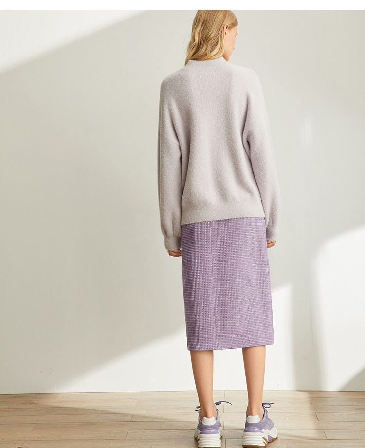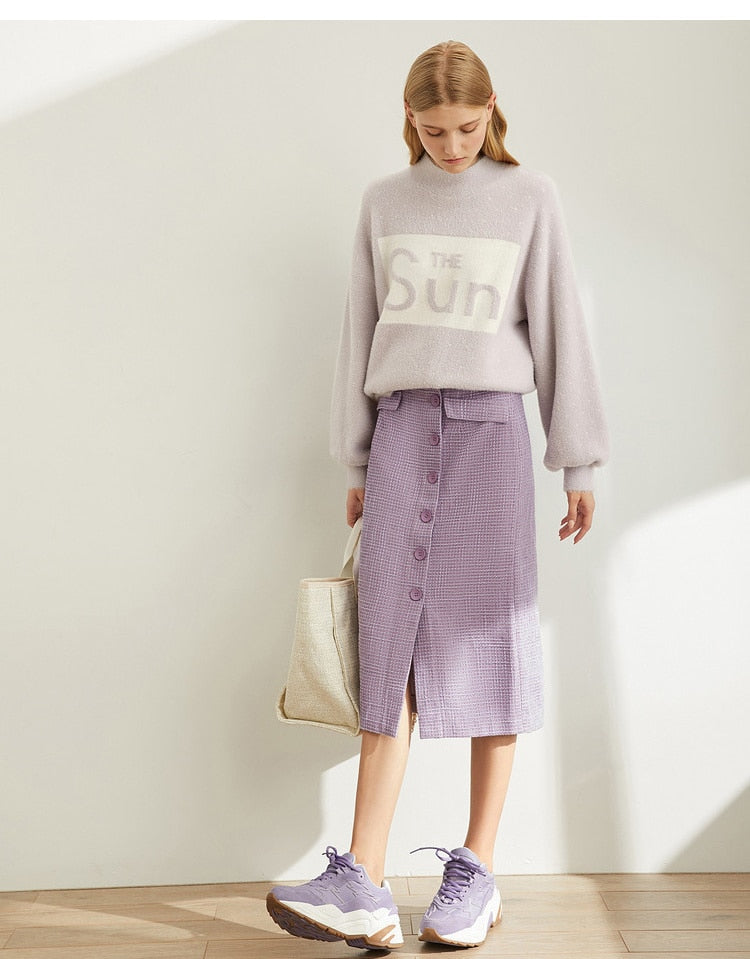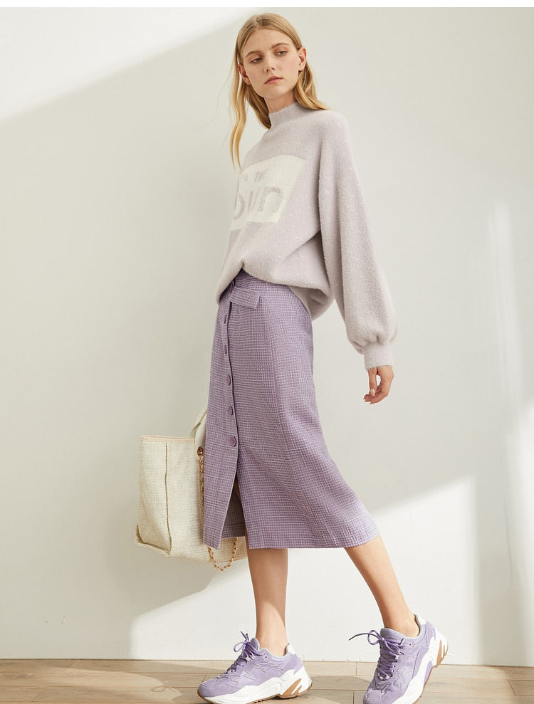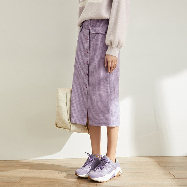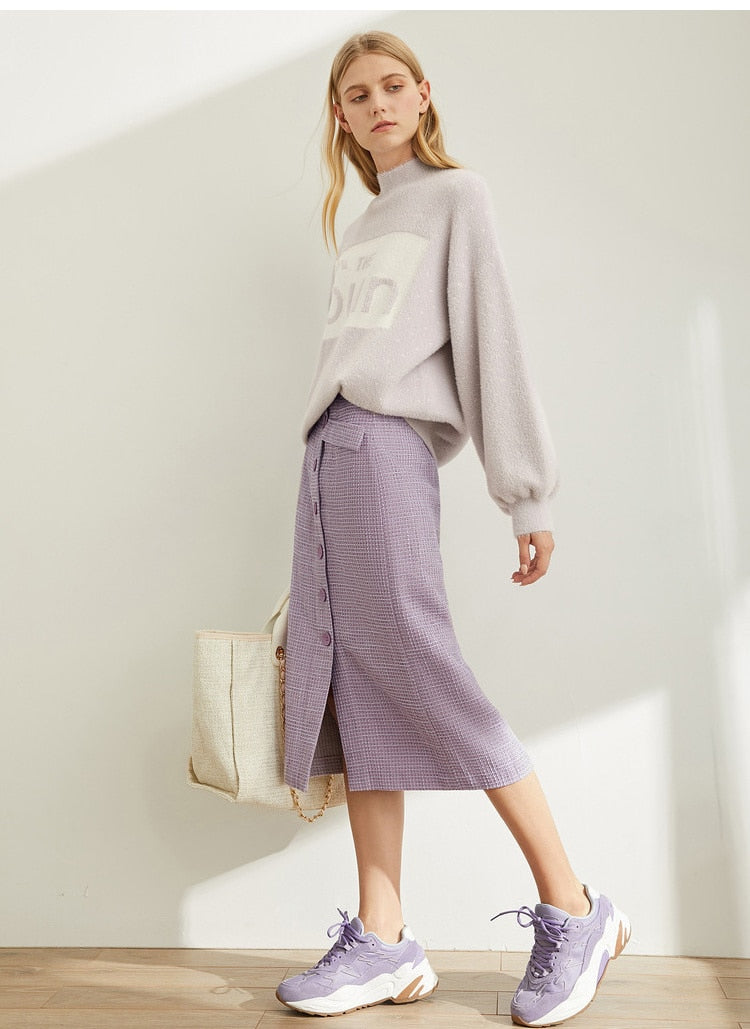 Spring French A-word Half Skirt Women High Waist Plaid Knee-Length Skirt