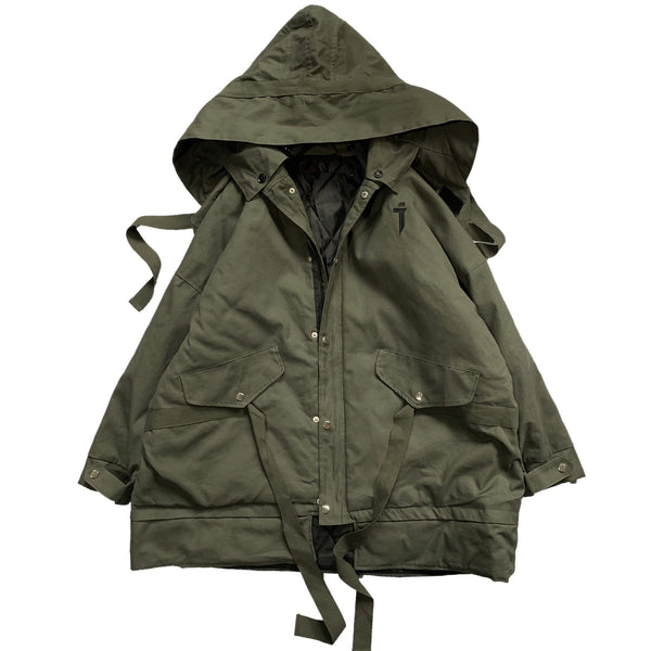 Detachable Letter Printed Mens Hooded Parkas Hip Hop Thick Padded Jackets Harajuku Ribbons Windbreaker Streetwear