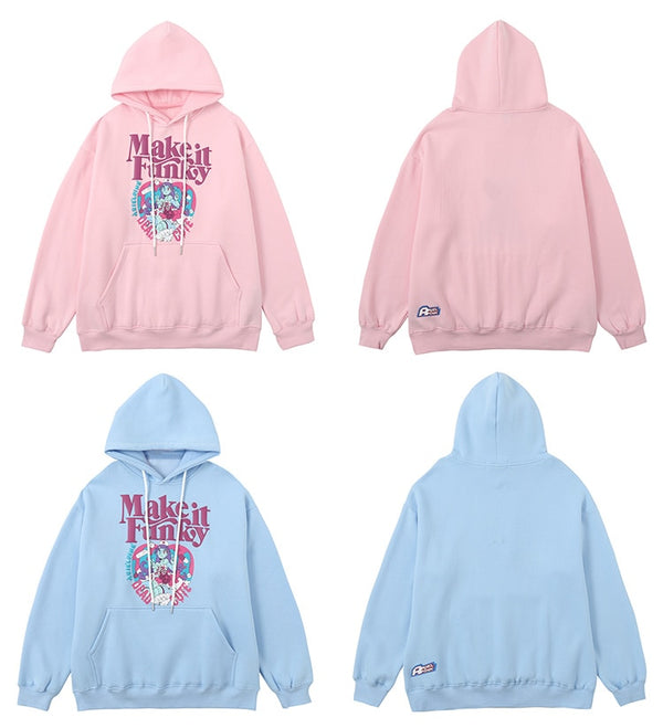 Hoodie Men Cute Comics Girl Heart-shaped Print Fleece Pullover Big pocket College Style Casual Japanese Tops Streetwear