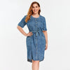 Women's Plus Size Denim Dress Summer Slim Fit Dress Casual Dress Woven Denim Short Sleeve -LengtKneeh with Sashes 7136026362024